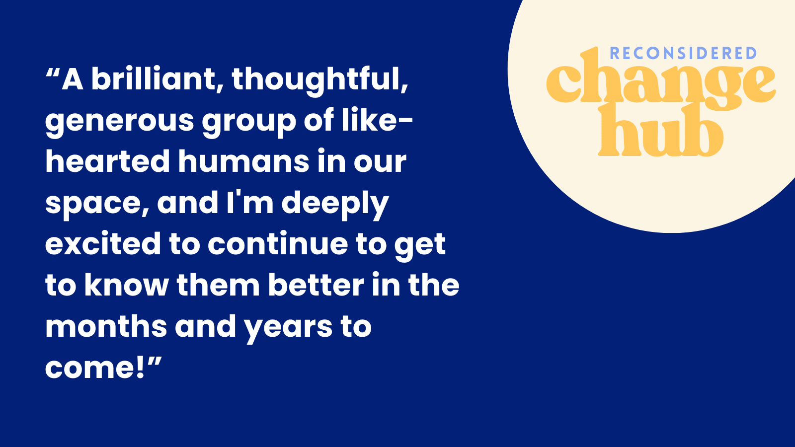 In our quarterly mastermind-style Brain Trust community gathering, Change Hub members come together to collectively brainstorm and support one another on challenges we’re facing.