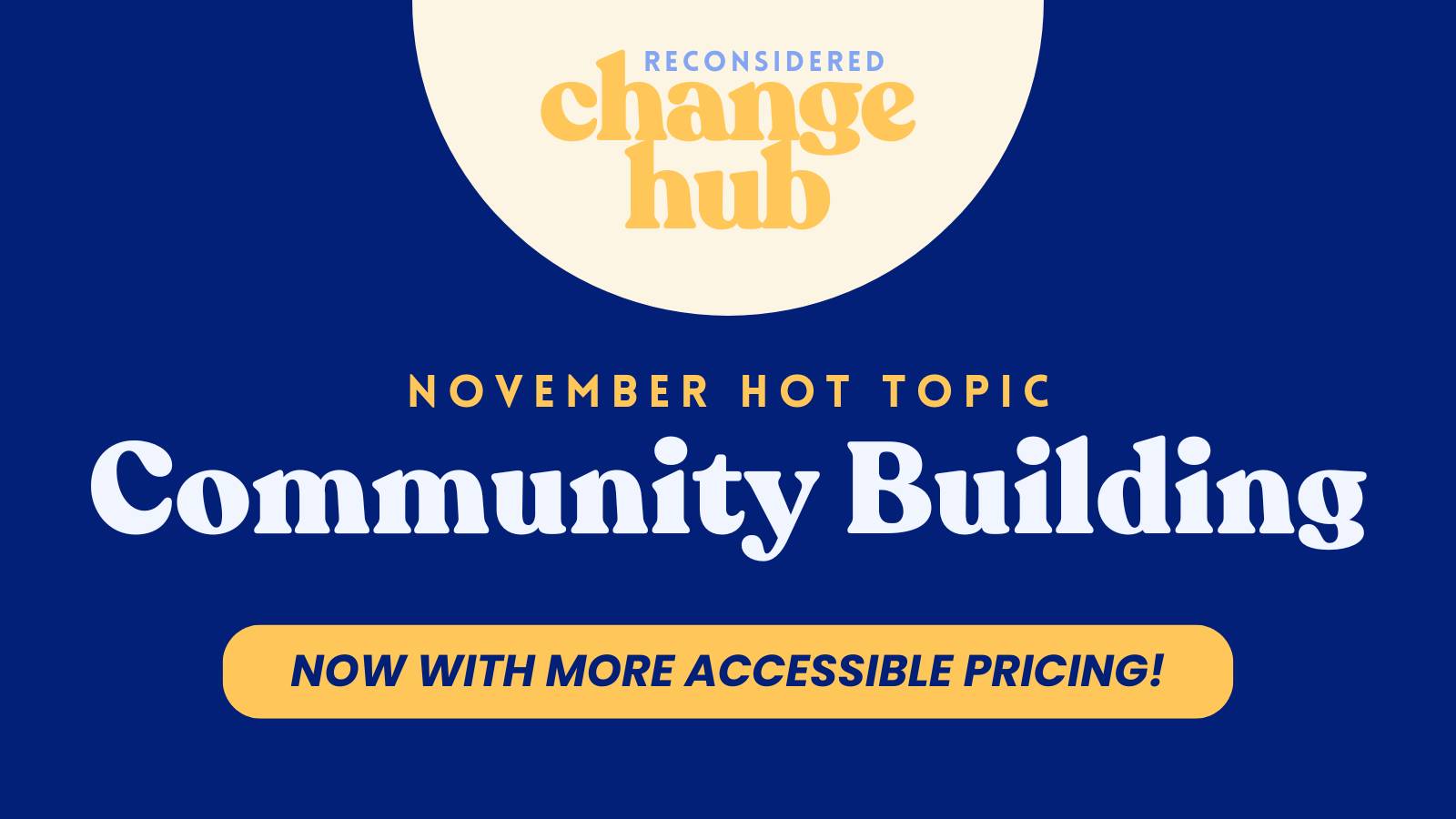 For November in the Change Hub, we’re focusing on a Hot Topic that’s riiiight up our alley: Community Building. We recently hosted a “Let’s Talk” session on Non-Icky Networking and a “How I Built A Local Sustainability Network” Learning Lab with Lisa Hendrickson, co-founder of Austin Sustainability Professionals. Next up: an “Anti-Speed Networking” meet-up, our Member Matchmaking service for 1:1 connections, weekly community building challenges and member-hosted IRL meet-ups around the world. And did we mention our new, more accessible pricing model?